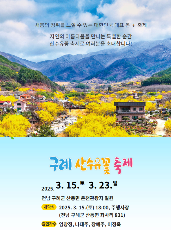🌸 노란 산수유꽃이 만개하는 구례 산수유축제! 전통문화 체험과 함께 봄을 만끽할 수 있는 대표적인 봄꽃 축제입니다.