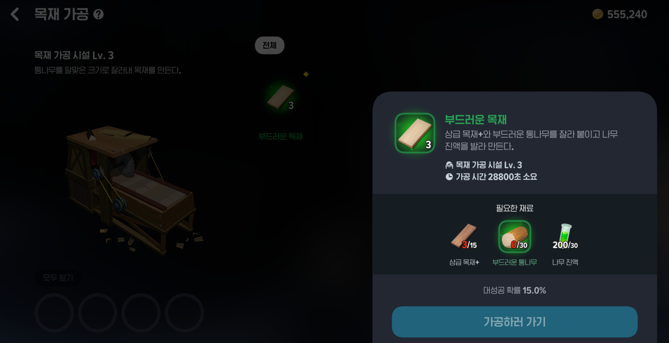 | 부드러운 목재 | 15개 | 목재 가공 |