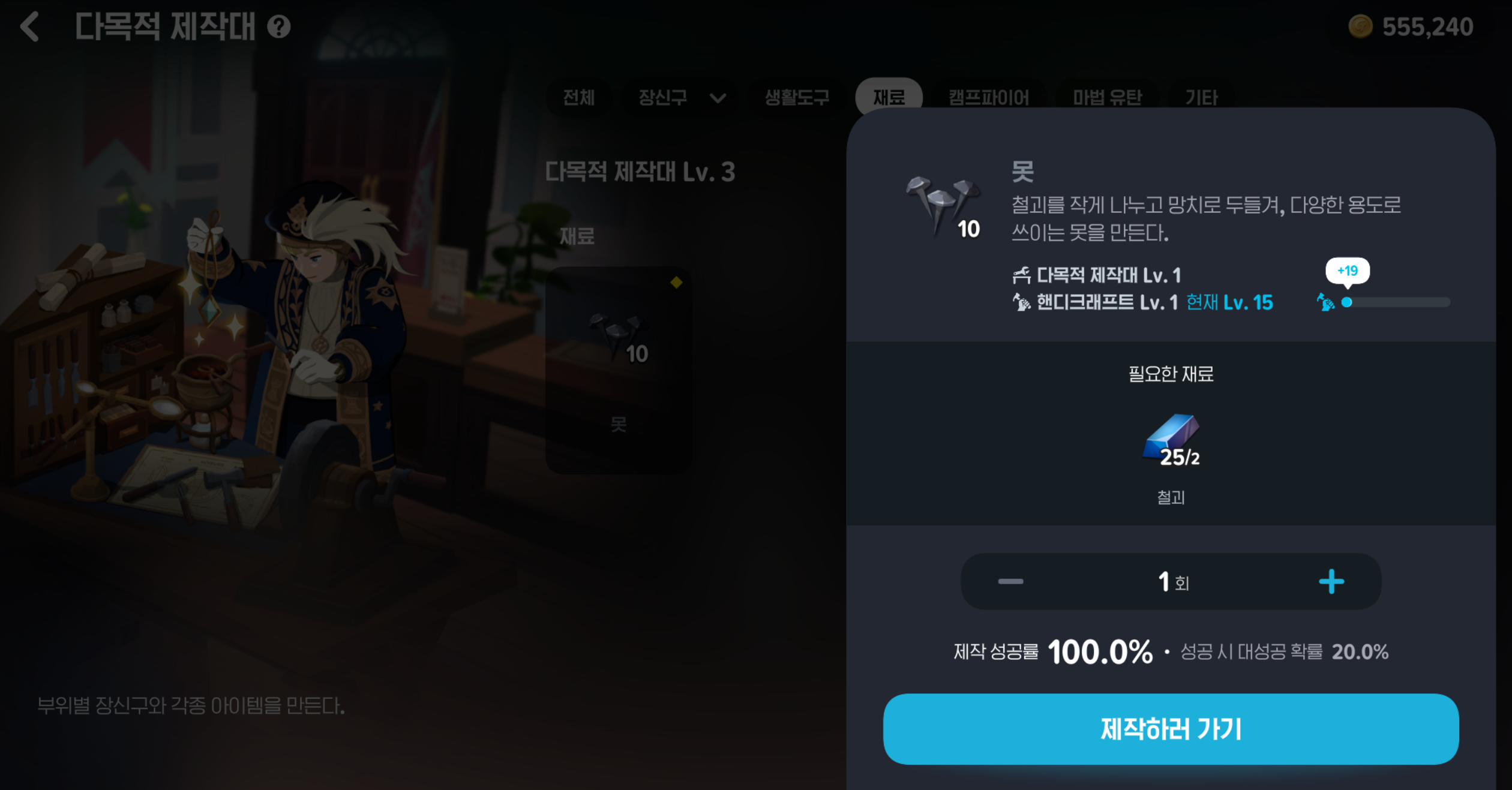 | 권장 핸디크래프트 레벨 | Lv.22 | 숙련도 필요 |