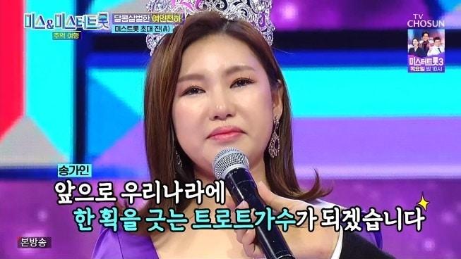 송가인은 미스&미스터트롯 추억여행에서 어머니를 향한 깊은 애정을 전합니다. 그녀는 국가 지정 무형문화재 72호 진도 씻김굿 전수자이자 무속인인 어머니를 자랑스럽게 소개하며, “어머니의 직업을 부끄러워한 적 없다”고 말합니다.